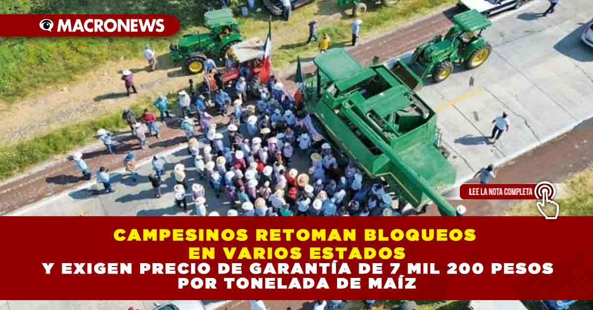 Campesinos de Guanajuato, Michoacán, Hidalgo, Tlaxcala y Sinaloa mantenían sus protestas y bloqueos carreteros. Los productores de maíz continúan con la exigencia de un precio de garantía de 7 mil 200 pesos por tonelada.