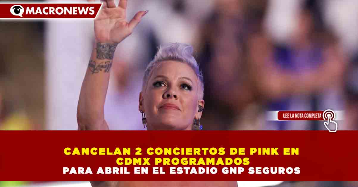 Redacción Macronews.- Los conciertos de Pink en la Ciudad de México, previstos para los días 26 y 27 de abril de 2026 en el Estadio GNP Seguros, fueron cancelados debido a “complicaciones derivadas de un caso fortuito” que afectan la logística del evento, informó Ocesa mediante un comunicado. La cancelación es ajena tanto a la cantante como al promotor y al recinto.