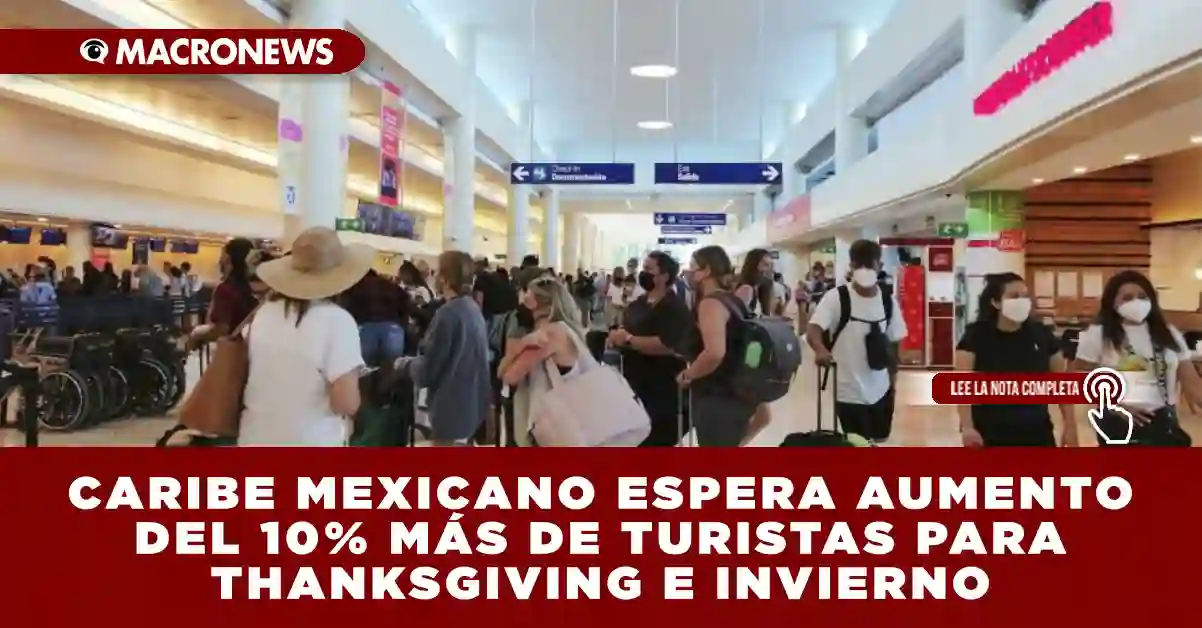 CARIBE MEXICANO ESPERA AUMENTO DEL 10% MÁS DE TURISTAS PARA THANKSGIVING E INVIERNO