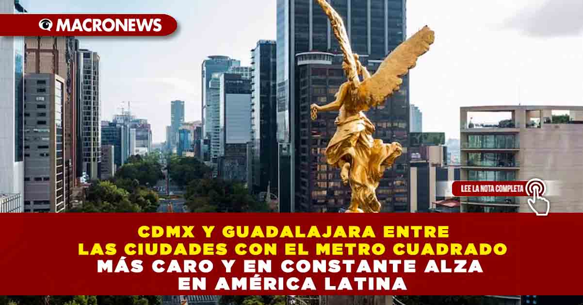 Montevideo, Uruguay, es la ciudad latinoamericana con el metro cuadrado más caro, en promedio 3 mil 209 dólares; seguido de la Ciudad de México, 2 mil 909 dólares; Monterrey, 2 mil 787 dólares; Guadalajara, 2 mil 717 dólares y Buenos Aires, Argentina, 2 mil 622 dólares.