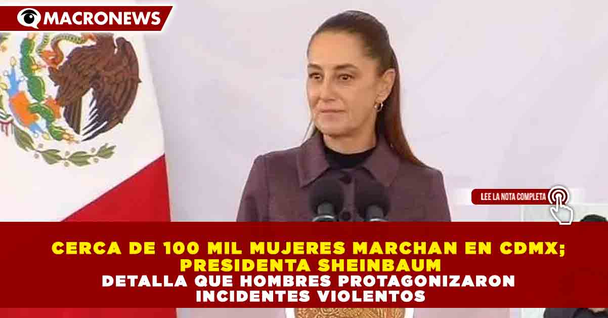 Redacción Macronews.- Durante la movilización del Día Internacional de la Mujer 2026 en la Ciudad de México, que reunió a cerca de 100 mil participantes, la presidenta Claudia Sheinbaum afirmó que varios de los actos violentos fueron protagonizados por hombres ajenos a los contingentes feministas, en particular por un grupo reducido conocido como “bloque negro” que intentó ingresar por la fuerza al Palacio del Ayuntamiento.