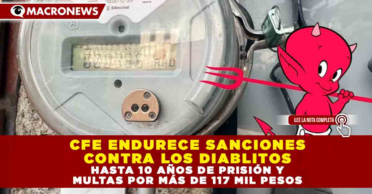 CFE ENDURECE SANCIONES CONTRA LOS DIABLITOS HASTA 10 AÑOS DE PRISIÓN Y MULTAS POR MÁS DE 117 MIL PESOS