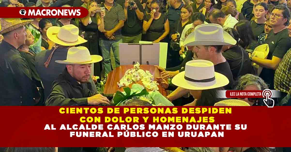 Uruapan, Mich. Cientos de personas, entre familiares, amigos, simpatizantes y ciudadanos en general, participaron este domingo en los funerales del alcalde independiente Carlos Manzo Rodríguez, asesinado a balazos la noche del sábado en la Pérgola municipal, la plaza principal de la localidad.