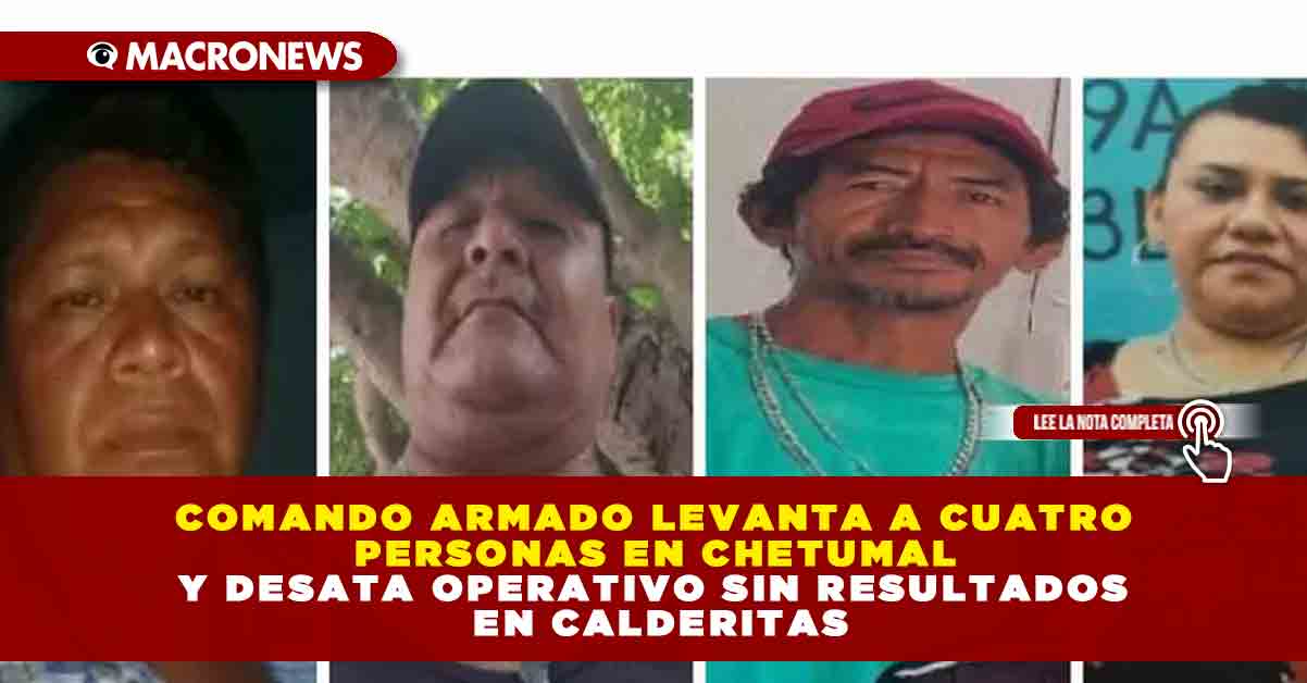 Un comando armado integrado por diez hombres encapuchados privó de la libertad a tres hombres y una mujer en la colonia Antorchistas Ecosur, en Chetumal, para luego huir rumbo a la comunidad de Calderitas, en el municipio de Othón P. Blanco.