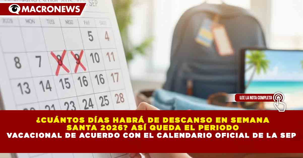 Redacción Macronews.- Con el ciclo escolar 2025-2026 en curso, la Secretaría de Educación Pública (SEP) confirmó que las vacaciones de Semana Santa 2026 iniciarán oficialmente el lunes 30 de marzo y se extenderán por dos semanas completas, otorgando a los estudiantes un total de 17 días consecutivos sin clases.