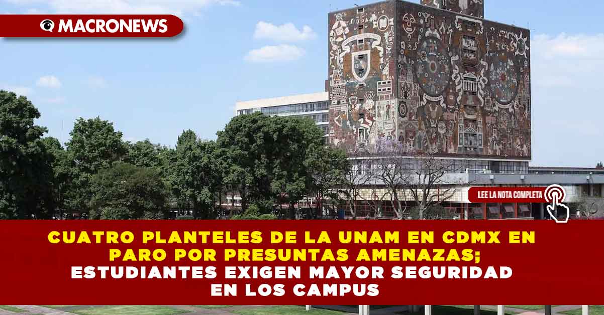 Al menos cuatro planteles de la Universidad Nacional Autónoma de México (UNAM) se encuentran en paro de actividades este viernes, tras reportarse presuntas amenazas en contra de la comunidad estudiantil.