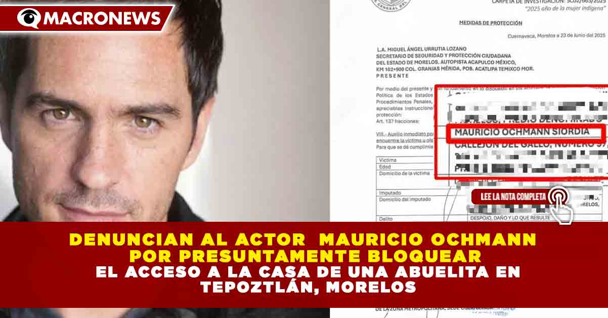 Redacción Macronews.- El actor Mauricio Ochmann fue señalado en una denuncia por presuntamente bloquear el acceso a la vivienda de una adulta mayor en el municipio de Tepoztlán, lo que ha derivado en una investigación para esclarecer los hechos.