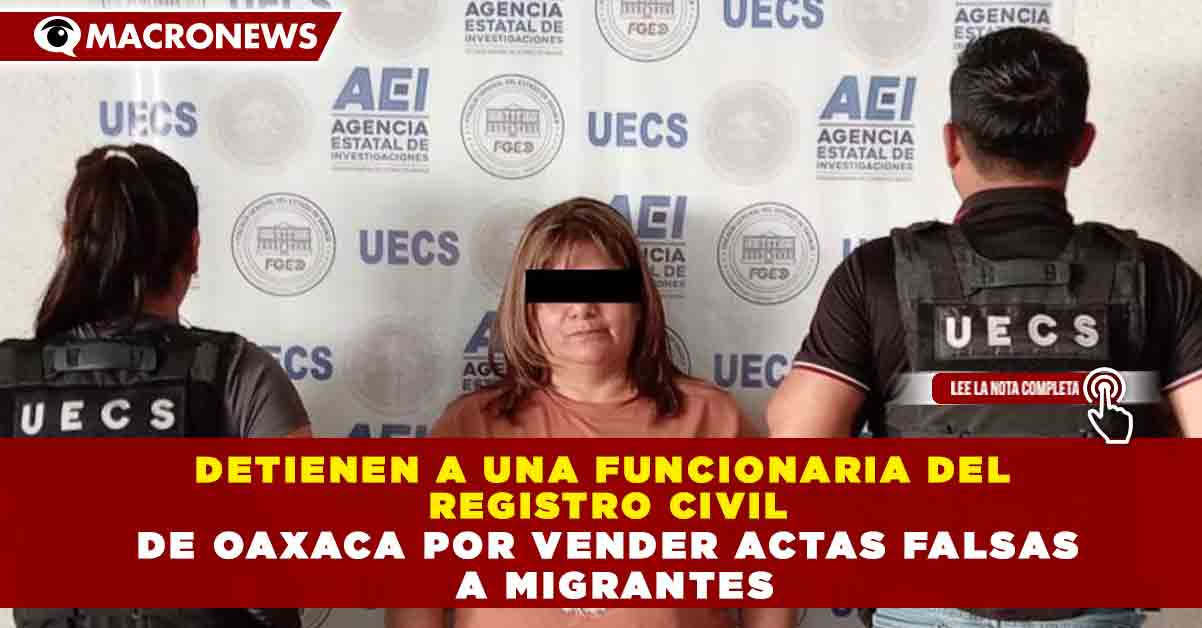 Redacción Macronews.- Una funcionaria del Registro Civil del estado de Oaxaca fue detenida por su presunta participación en la venta de actas de nacimiento falsas a personas migrantes, en un caso que ya es investigado por autoridades estatales y federales por posibles delitos de falsificación de documentos y uso indebido de funciones públicas.