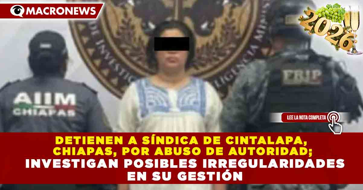 Redacción Macronews.- Autoridades de Chiapas confirmaron la detención de la síndica municipal de Cintalapa, señalada por su presunta responsabilidad en el delito de abuso de autoridad, en un caso que ha generado fuerte impacto político y social en el municipio. De acuerdo con información preliminar, la funcionaria habría incurrido en actos indebidos en el ejercicio de sus funciones, lo que derivó en la apertura de una carpeta de investigación y su posterior aseguramiento.