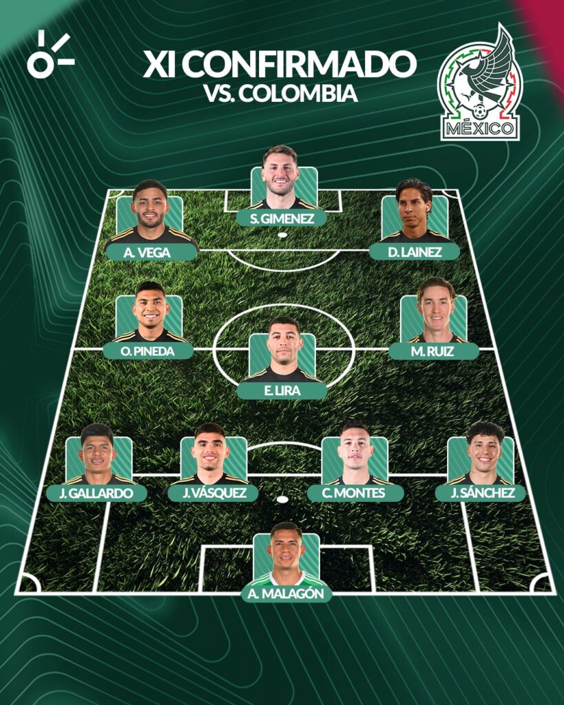 Alineaciones del México vs Colombia para el partido amistoso de Fecha FIFA