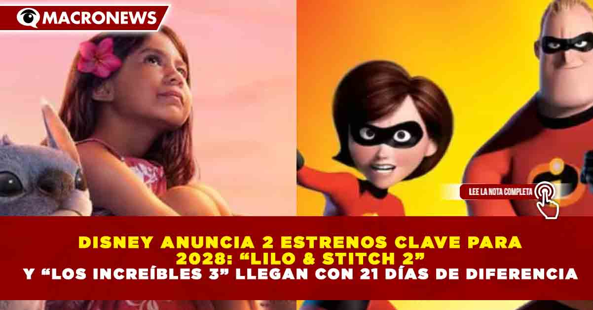 Redacción Macronews.- The Walt Disney Company confirmó el estreno de dos de sus secuelas más esperadas para 2028, “Lilo & Stitch 2” y “Los Increíbles 3”, las cuales llegarán a los cines con apenas 21 días de diferencia, como parte de su estrategia para fortalecer sus franquicias más exitosas.