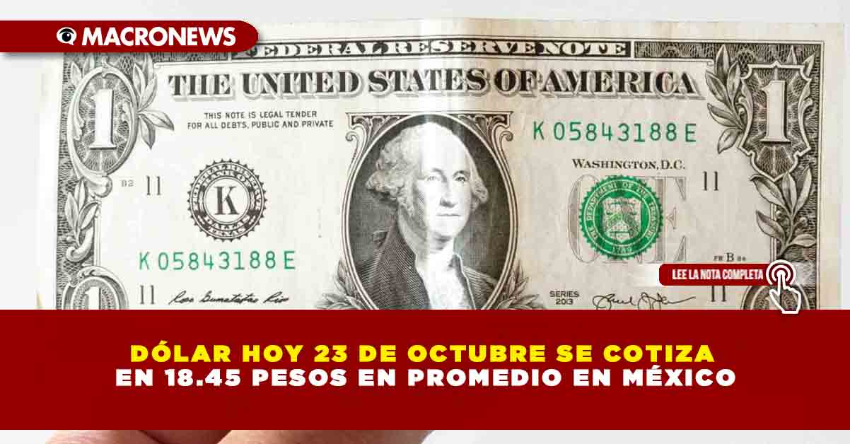 DÓLAR HOY 23 DE OCTUBRE SE COTIZA EN 18.45 PESOS EN PROMEDIO EN MÉXICO