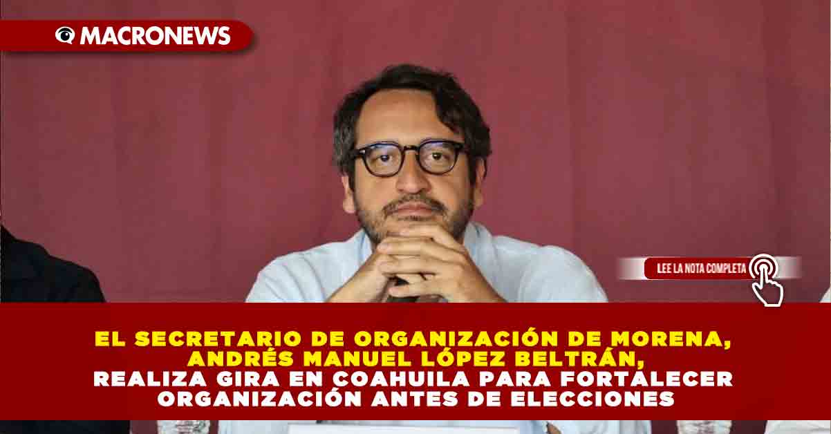 El secretario de organización del Comité Ejecutivo Nacional de Morena, Andrés Manuel López Beltrán, realizó ayer una gira de trabajo por Coahuila, en la que visitó las tres ciudades más pobladas de esa entidad, que son Torreón, Saltillo y Monclova, para evaluar el trabajo de los coordinadores de la 4T.