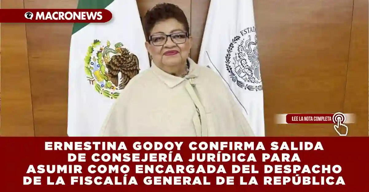 MÉXICO. Ernestina Godoy Ramos anunció formalmente este viernes el cierre de su etapa al frente de la Consejería Jurídica del Ejecutivo Federal y confirmó que asumirá la responsabilidad como encargada del despacho de la Fiscalía General de la República (FGR).
