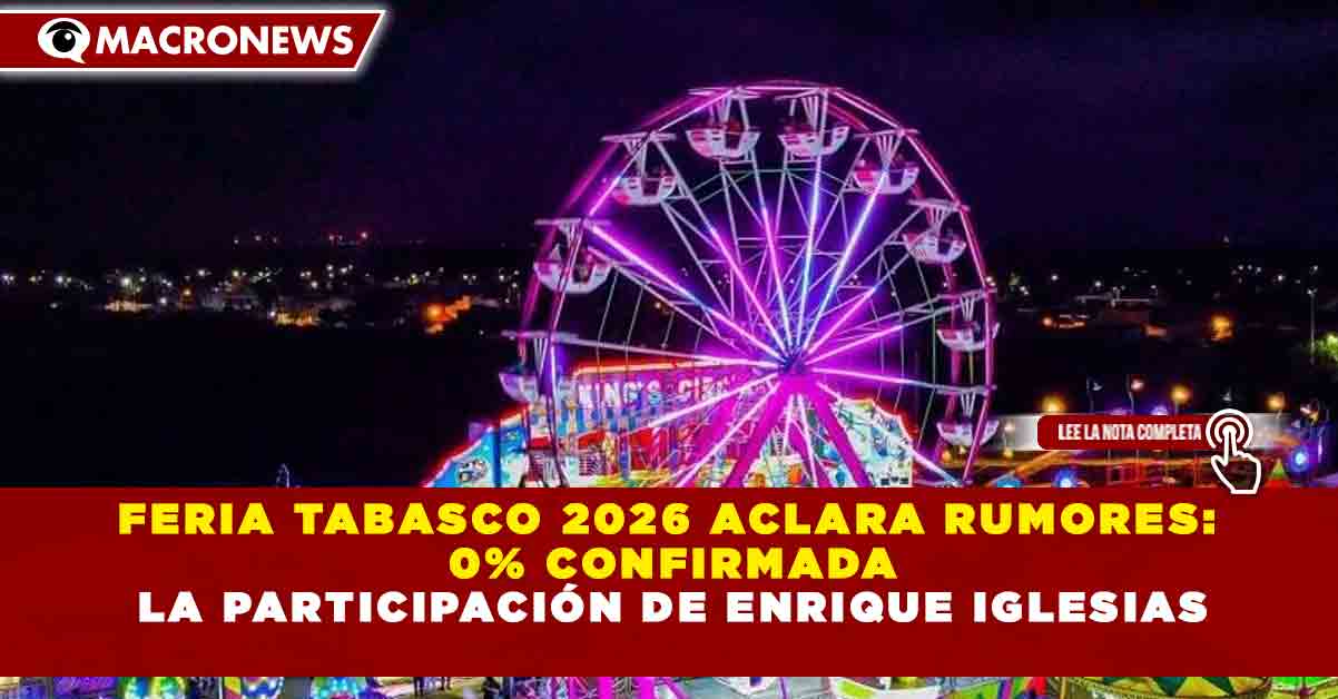 Redacción Macronews.- La Feria Tabasco aclaró de manera oficial que no está confirmada la participación del cantante Enrique Iglesias, luego de que en redes sociales circularan versiones que daban por hecho su presentación en el evento, generando altas expectativas entre los asistentes y seguidores del artista.