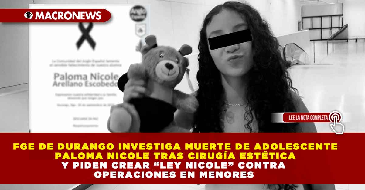 La Fiscalía General del Estado de Durango (FGE) confirmó una investigación por la muerte de Paloma Nicole, adolescente de 14 años, quien falleció el 20 de septiembre después de haber sido sometida a una cirugía estética de implante mamario, entre otras.
