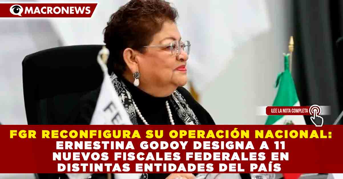 Redacción Macronews.- En un movimiento que marca un reacomodo interno de alto nivel, la titular de la Fiscalía General de la República (FGR), Ernestina Godoy Ramos, nombró a 11 nuevos fiscales federales en distintas entidades del país, con el objetivo de fortalecer la operación territorial y reforzar la estrategia nacional de procuración de justicia.