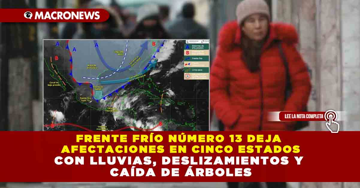 FRENTE FRÍO NÚMERO 13 DEJA AFECTACIONES EN CINCO ESTADOS CON LLUVIAS, DESLIZAMIENTOS Y CAÍDA DE ÁRBOLES
