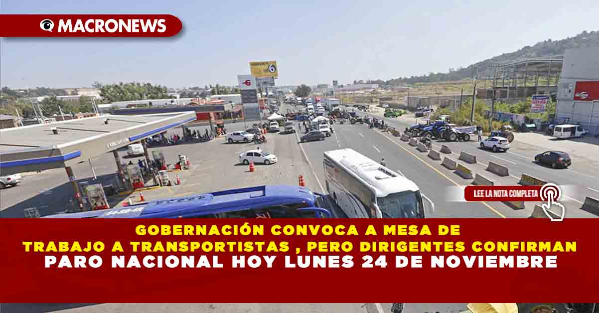La Secretaría de Gobernación (Segob) reiteró su disposición al diálogo con productores agrícolas y transportistas ante los bloqueos carreteros previstos para este lunes 24 de noviembre, mientras que los convocantes al paro nacional rechazaron acudir a la mesa propuesta por la dependencia, al considerar que la invitación se emitió sin oportunidad ni señales de buena voluntad.