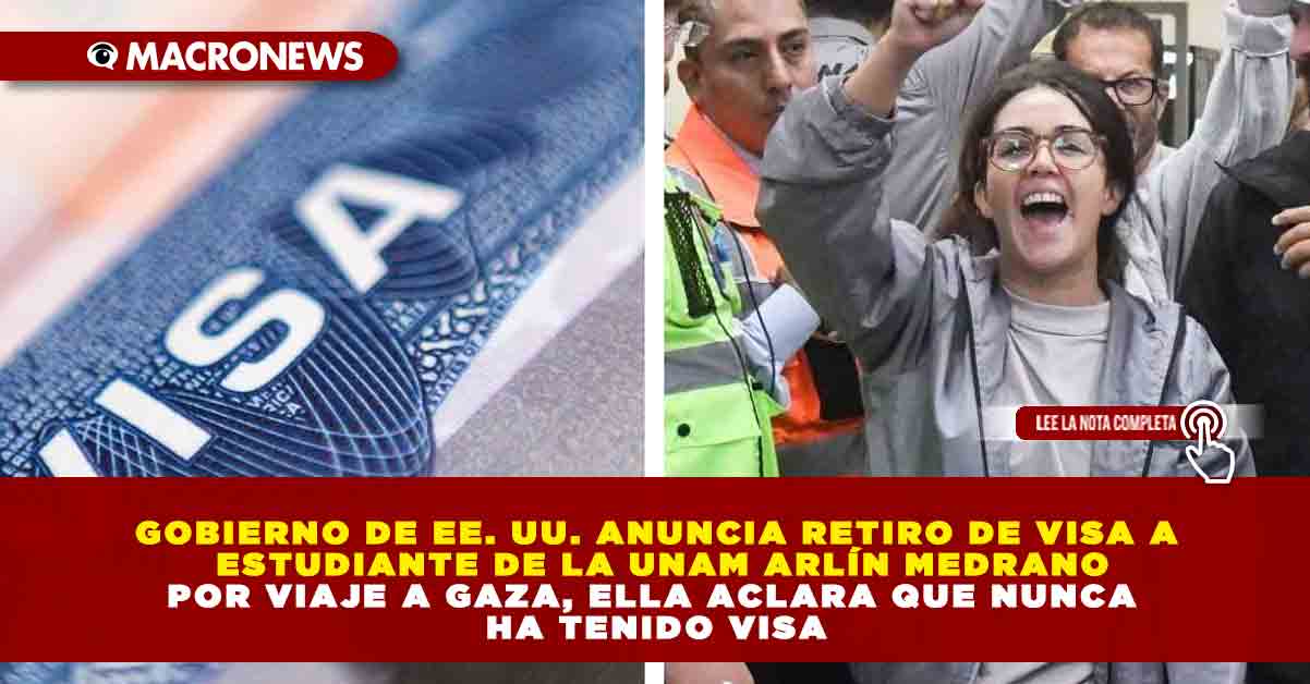 GOBIERNO DE EE. UU. ANUNCIA RETIRO DE VISA A ESTUDIANTE DE LA UNAM ARLÍN MEDRANO POR VIAJE A GAZA, ELLA ACLARA QUE NUNCA HA TENIDO VISA