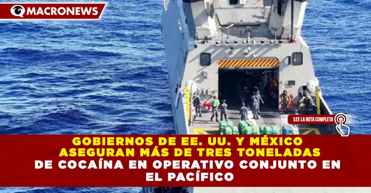 Redacción Macronews.- Autoridades de Estados Unidos y México incautaron más de 3 toneladas de cocaína durante un operativo marítimo conjunto en aguas del océano Pacífico, en una acción coordinada contra el tráfico internacional de drogas.