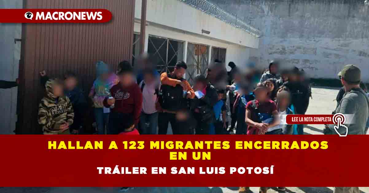El Instituto Nacional de Migración (INM) reportó hoy el hallazgo de 123 migrantes que estaban encerrados en la parte trasera de un tráiler en Matehuala, municipio de San Luis Potosí, donde han ocurrido secuestros masivos de extranjeros este año.