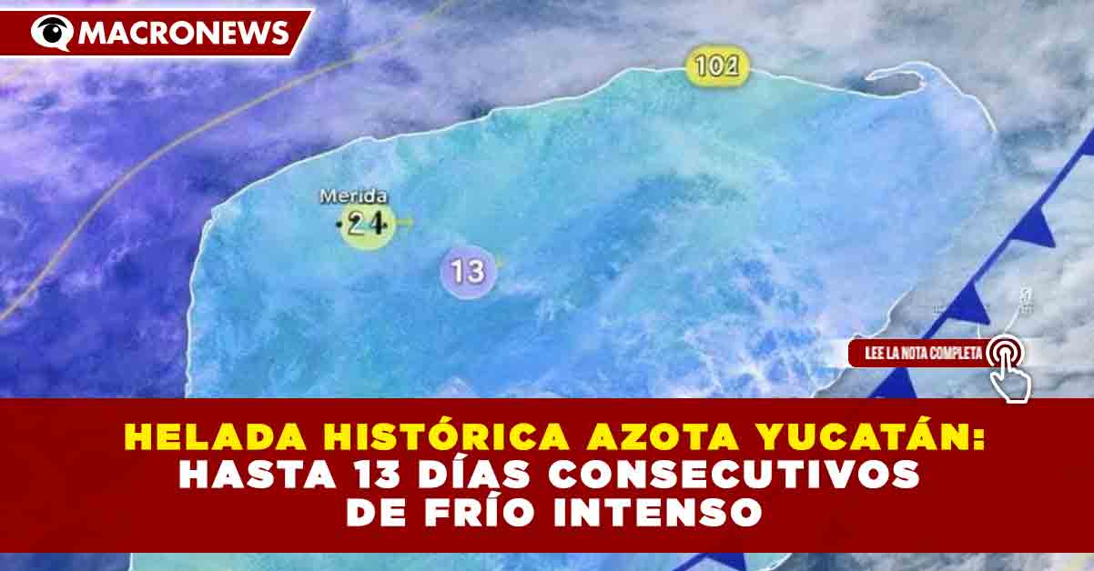 Una heladez histórica impacta al estado de Yucatán, donde se han registrado hasta 13 días consecutivos de frío intenso, una condición atípica para la región que ha provocado descensos significativos de temperatura, afectaciones a la población vulnerable y alertas preventivas por parte de autoridades estatales y de Protección Civil.