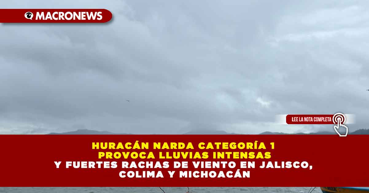 La tormenta tropical Narda se intensificó a huracán categoría 1 en la escala Saffir-Simpson, informó el Servicio Meteorológico Nacional (SMN). El organismo informó que debido a los desprendimientos nubosos de este fenómeno, se mantiene el pronóstico de lluvias muy fuertes en Jalisco, Colima y Michoacán.