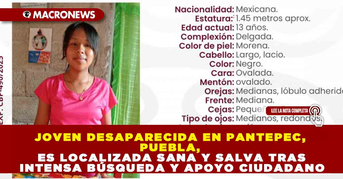 La adolescente había salido de su domicilio en el municipio de Pantepec sin informar a dónde se dirigía, lo que generó preocupación entre sus familiares, quienes de inmediato denunciaron su ausencia ante las autoridades y solicitaron apoyo de la ciudadanía para encontrarla.