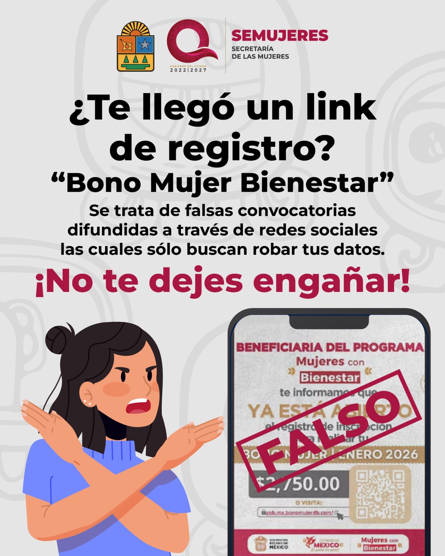 CHETUMAL, Q. ROO. – La Secretaría de las Mujeres de Quintana Roo (SEMUJERES) emitió una alerta urgente a la ciudadanía para desmentir la existencia de un programa denominado «Bono Mujer Bienestar», el cual se promociona de manera fraudulenta a través de redes sociales y cadenas de WhatsApp.