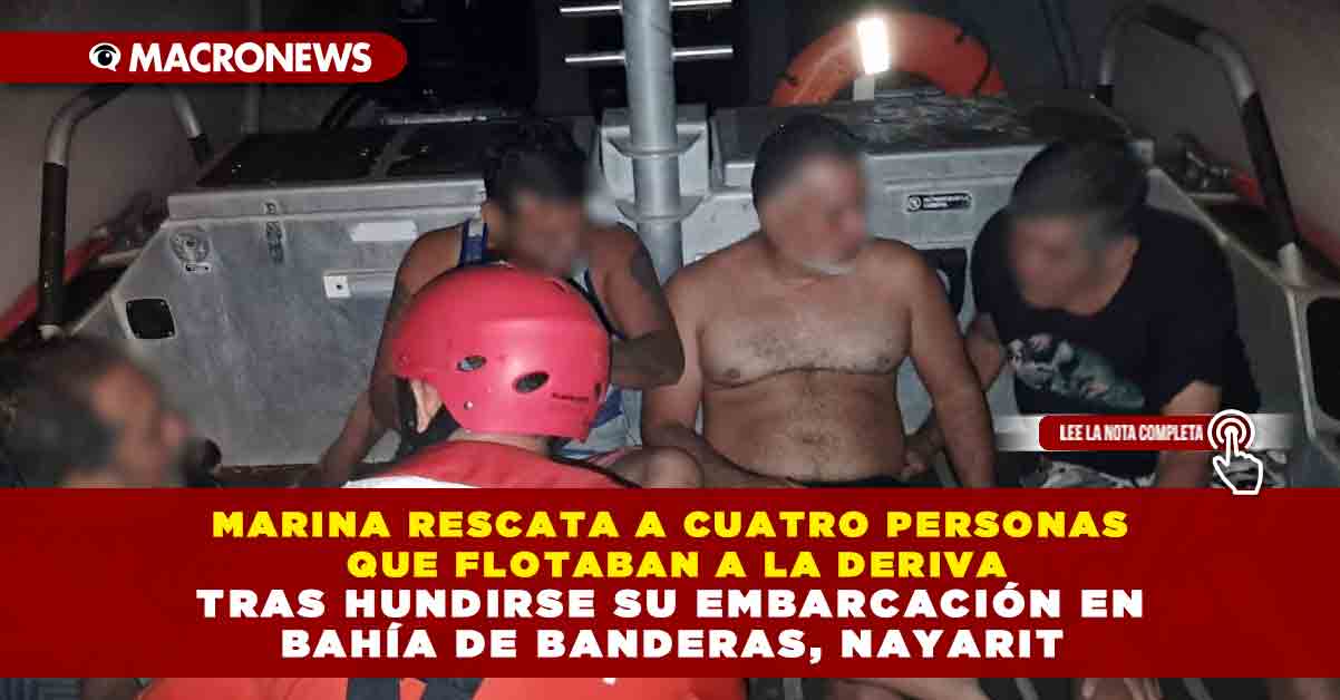 Por tal motivo, zarpó una embarcación tipo Defender para acudir al lugar de los hechos, donde encontraron a cuatro personas flotando a la deriva sostenidas por una hielera, mismas que expresaron que la embarcación menor donde navegaban había dado fondo.
