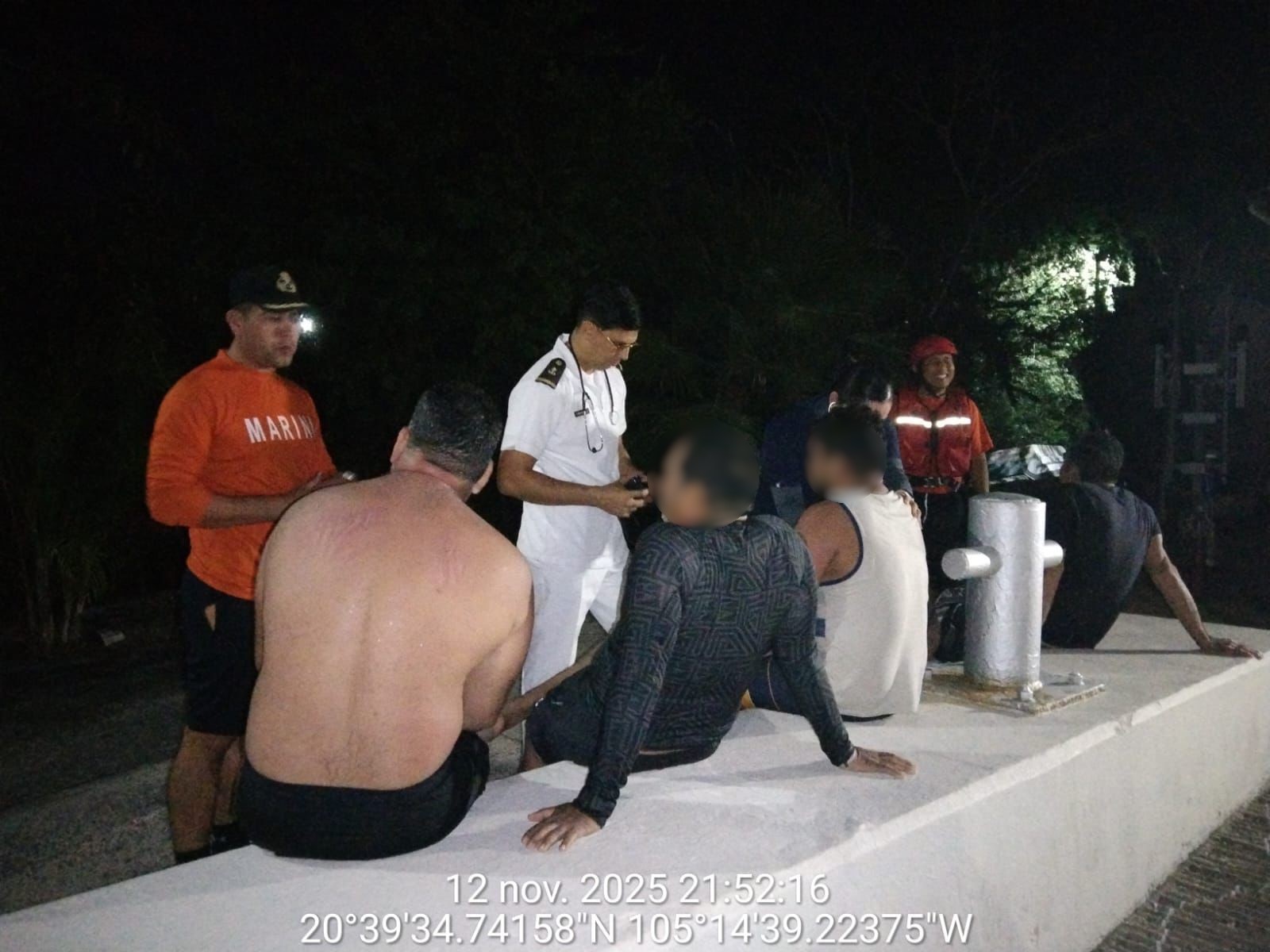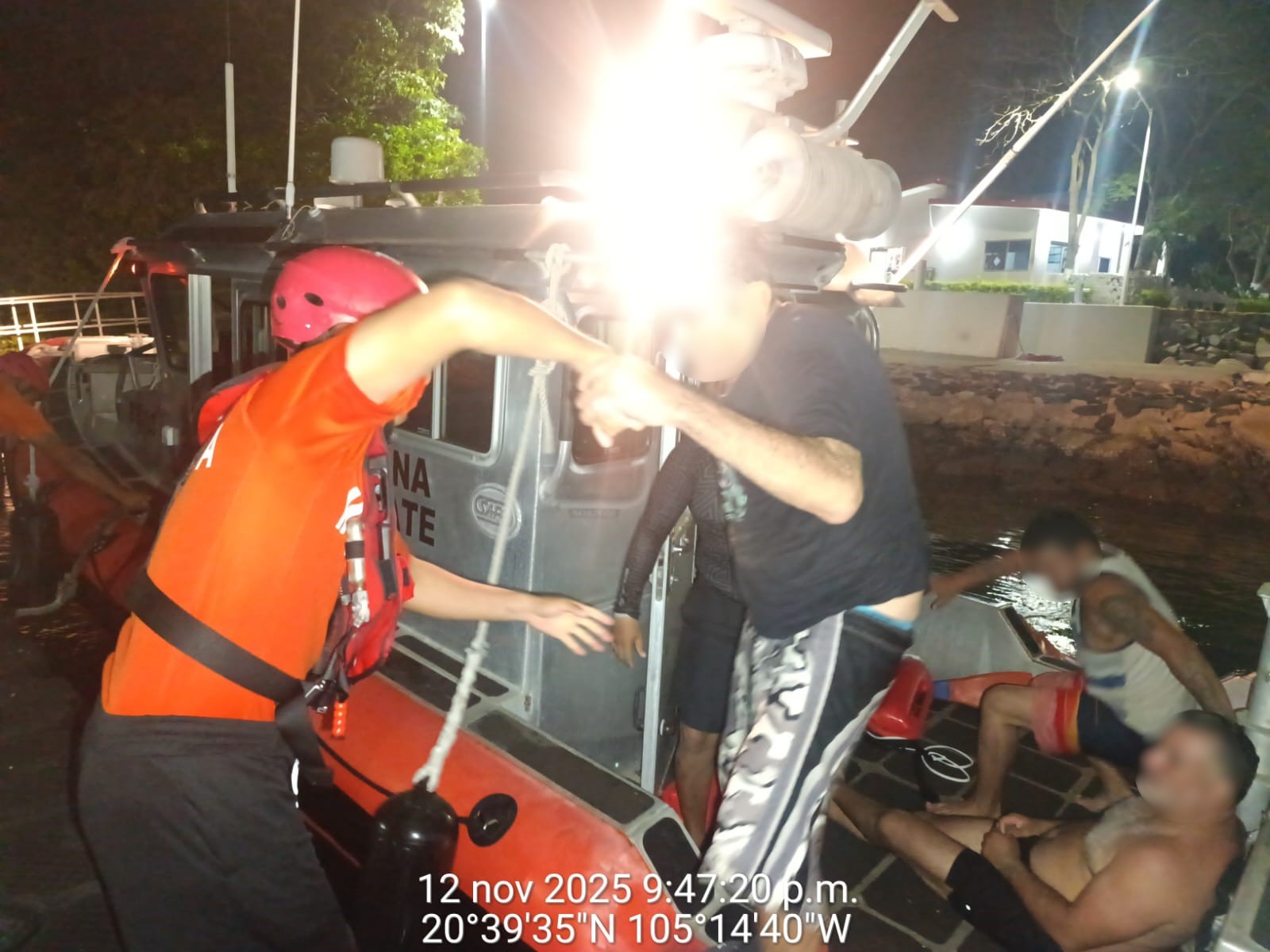 Las personas rescatadas fueron trasladadas a puerto seguro en el muelle del ENSAR Vallarta, donde personal de Sanidad Naval los valoró y les proporcionó atención médica, encontrándolos estables de salud. Posteriormente las personas rescatadas se retiraron de las instalaciones navales por sus propios medios.