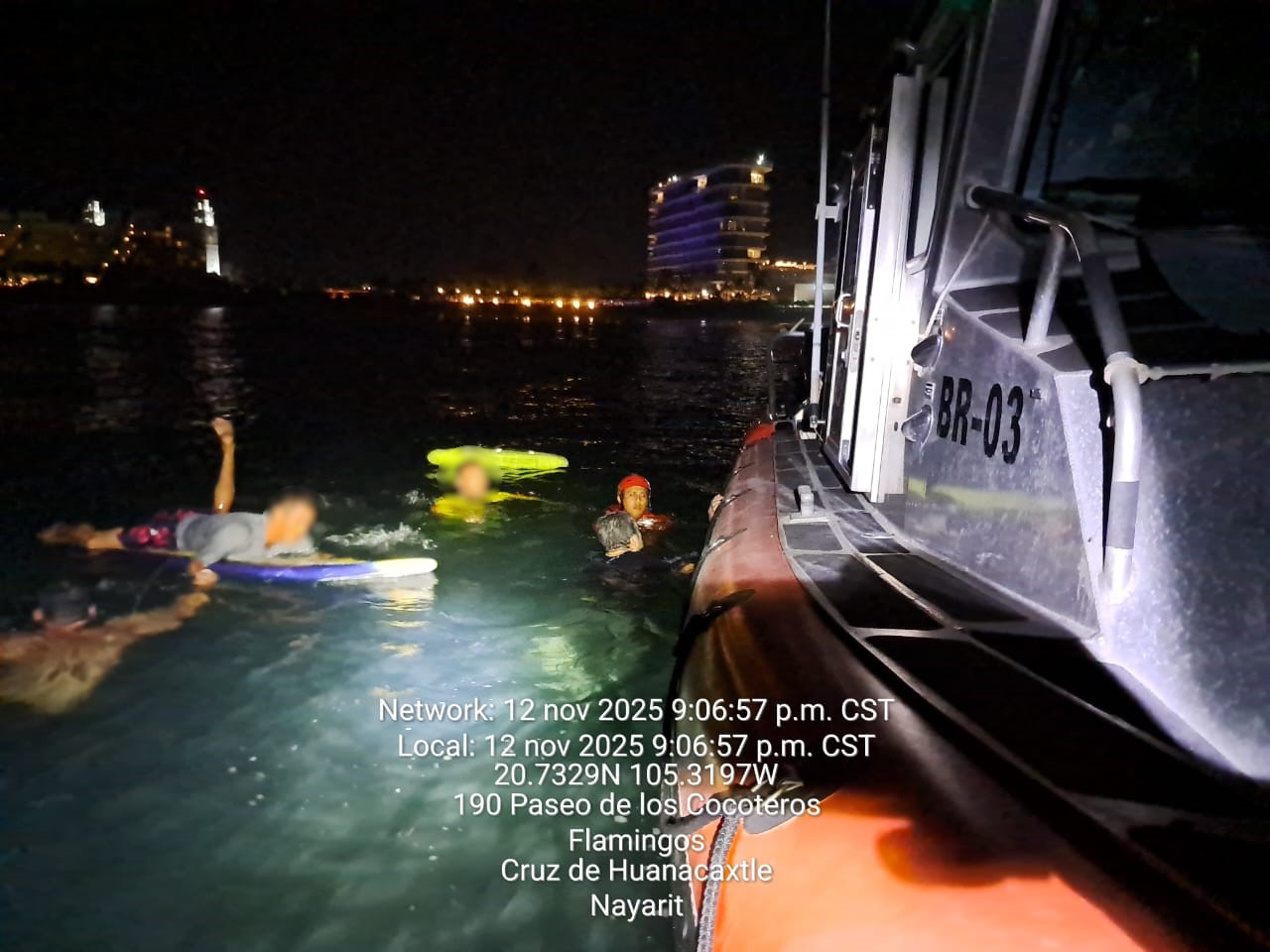 Puerto Vallarta, Jal.- La Secretaría de Marina, a través de la Armada de México, por conducto de la Décima Segunda Zona Naval, en coordinación con la Estación Naval de Búsqueda, Rescate y Vigilancia Marítima (ENSAR) Vallarta, en funciones de Guardia Costera, informa que ayer personal naval perteneciente rescató a cuatro personas que se encontraban en peligro de ahogamiento en las costas de Bahía de Banderas, Nayarit.