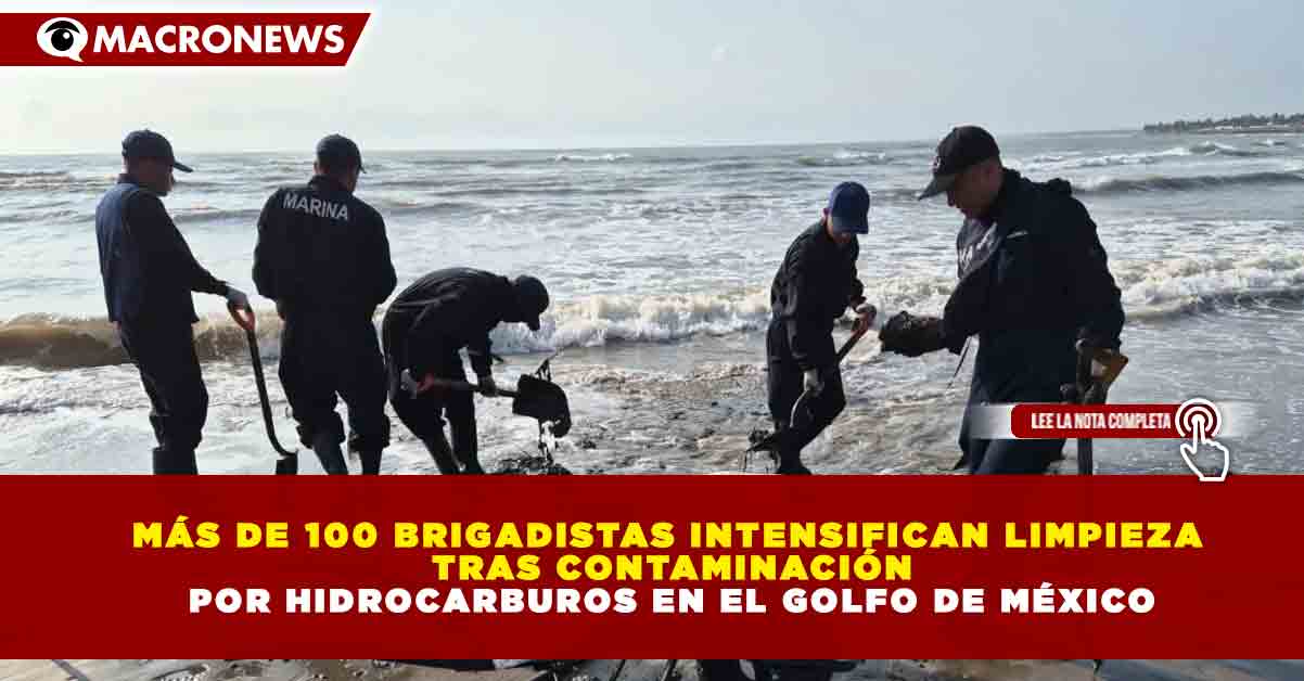 Redacción Macronews.- Brigadas integradas por más de 100 elementos intensificaron las labores de saneamiento en el litoral del Golfo de México, tras detectarse contaminación por hidrocarburos que afecta diversas zonas costeras, generando preocupación ambiental y social.