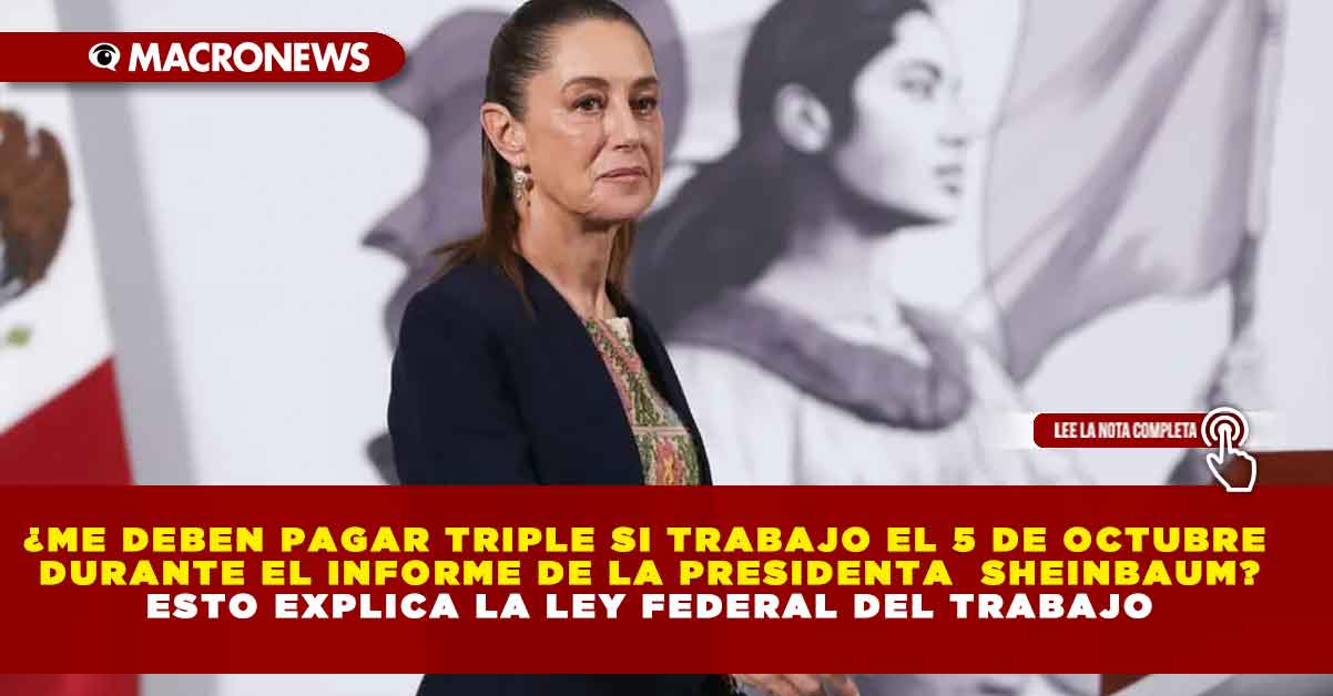 Aunque la buena noticia es que los días de descanso oficiales se pagan al triple, la mala es que no aplica para el día 5 de octubre que hay informe de Gobierno por el primer año de Sheinbaum en el poder.