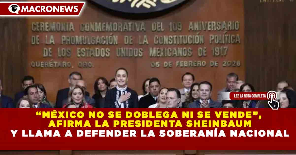 Redacción Macronews.- En el marco del Día de la Constitución, la presidenta de México, Claudia Sheinbaum Pardo, reafirmó que el país no permitirá injerencias extranjeras y defendió con firmeza la soberanía nacional, al asegurar que “México no se doblega, no se arrodilla, no se rinde y no se vende”, durante la ceremonia por el aniversario de la promulgación de la Constitución de 1917.