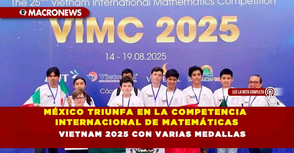 El talento mexicano se alzó victorioso en la Competencia Internacional de Matemáticas Vietnam 2025 realizada en la ciudad de Da Nang, Vietnam, del 14 al 19 de agosto del año en curso.