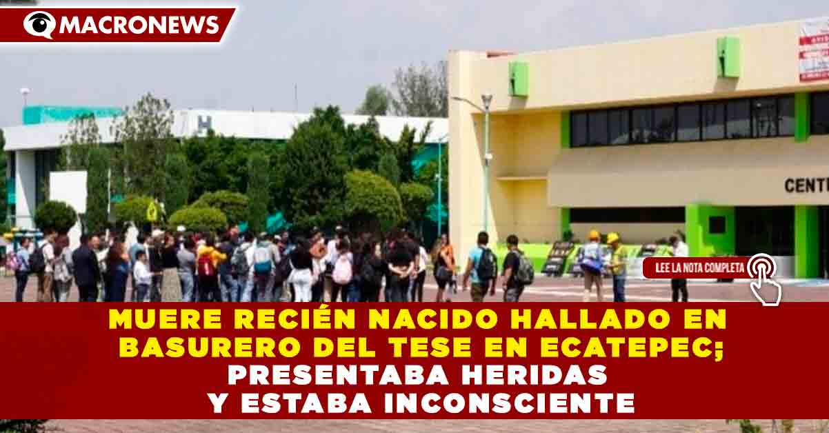 Redacción Macronews.- Autoridades confirmaron el fallecimiento de un recién nacido que fue localizado dentro de un bote de basura en las instalaciones del Tecnológico de Estudios Superiores de Ecatepec (TESE), en el municipio de Ecatepec, Estado de México.