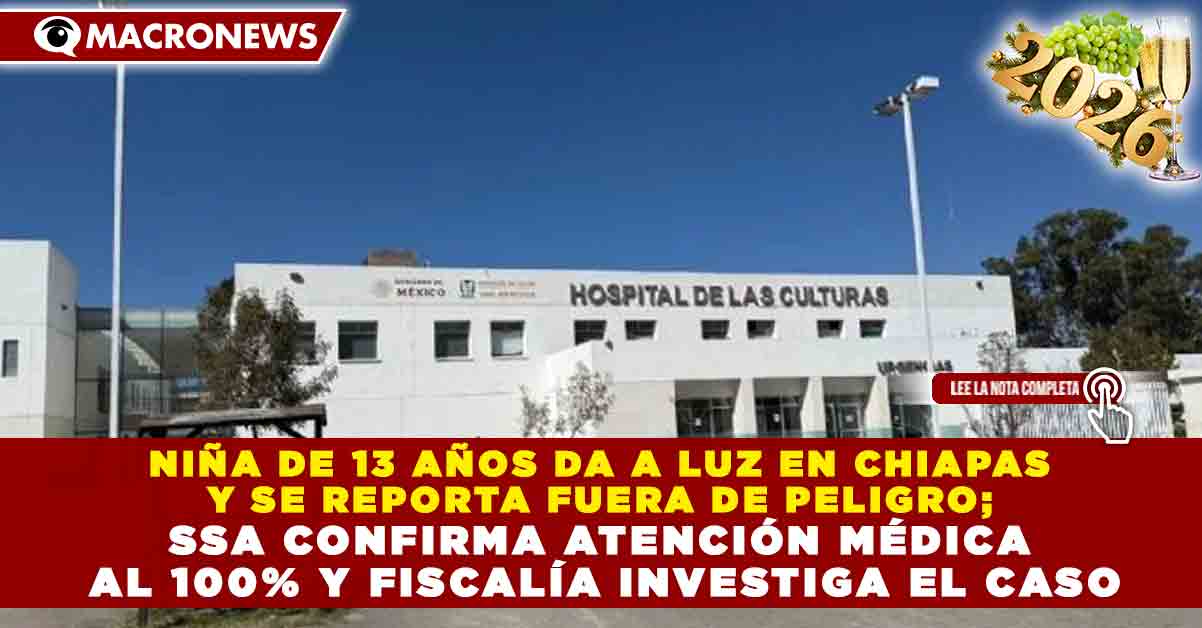 Redacción Macronews.- Una menor de 13 años que dio a luz en el estado de Chiapas se encuentra fuera de peligro, informó la Secretaría de Salud (SSA), al confirmar que tanto la adolescente como el recién nacido reciben atención médica integral al 100%, mientras la Fiscalía mantiene abierta una investigación para esclarecer las circunstancias del embarazo.