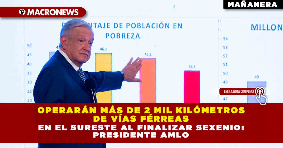 “Ahora lo que estamos haciendo es regresando a lo público, lo que es público, lo que es del pueblo, lo que es de la nación y estamos avanzando porque tengo el orgullo de que voy a ser el presidente de los últimos años que más kilómetros de vías férreas deje operando. Ya todo el sureste, desde el Istmo hasta la Península, 2 mil 500 kilómetros”, subrayó.