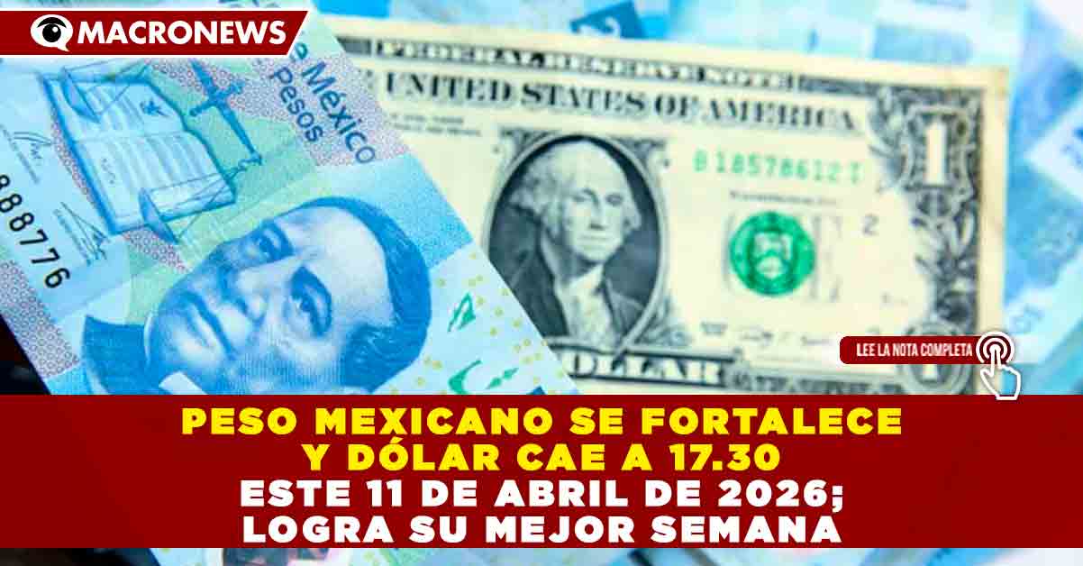 Redacción Macronews.- El peso mexicano registró una apreciación frente al dólar este sábado 11 de abril de 2026, alcanzando su mejor desempeño semanal desde septiembre de 2024, impulsado por factores internacionales y una mayor confianza en los mercados.
