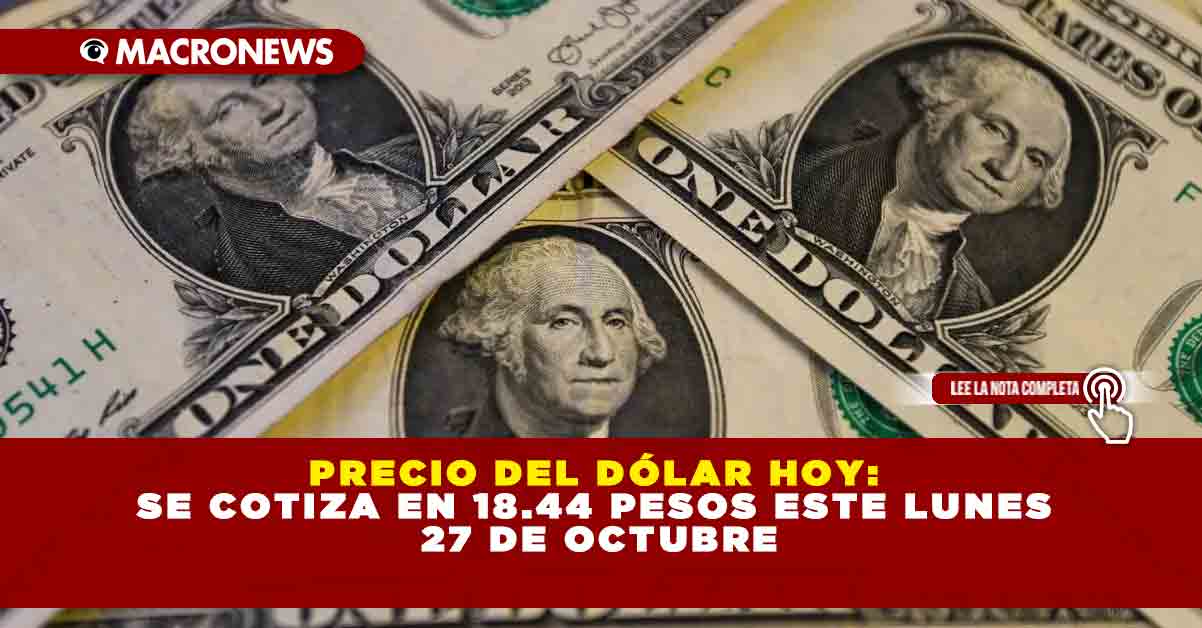 El precio del dólar hoy lunes 27 de octubre de 2025 en México es de 18.44 pesos por billete verde en promedio.