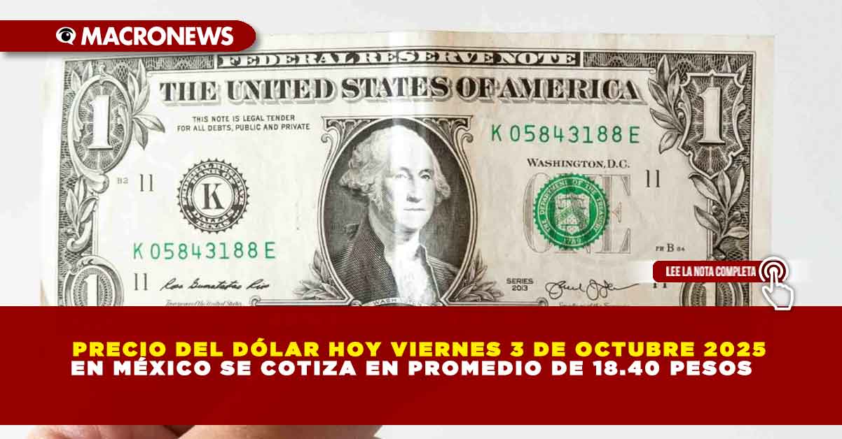 El precio del dólar hoy viernes 3 de octubre de 2025 en México es de 18.40 pesos por billete verde en promedio.