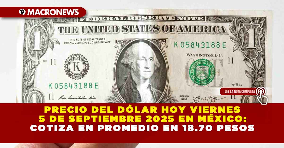 El precio del dólar hoy viernes 5 de septiembre de 2025 en México es de 18.70 pesos por billete verde en promedio.