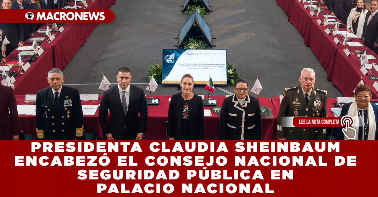 CIUDAD DE MÉXICO. La Presidenta de México, Claudia Sheinbaum Pardo, encabezó el día de hoy el Consejo Nacional de Seguridad Pública desde Palacio Nacional.