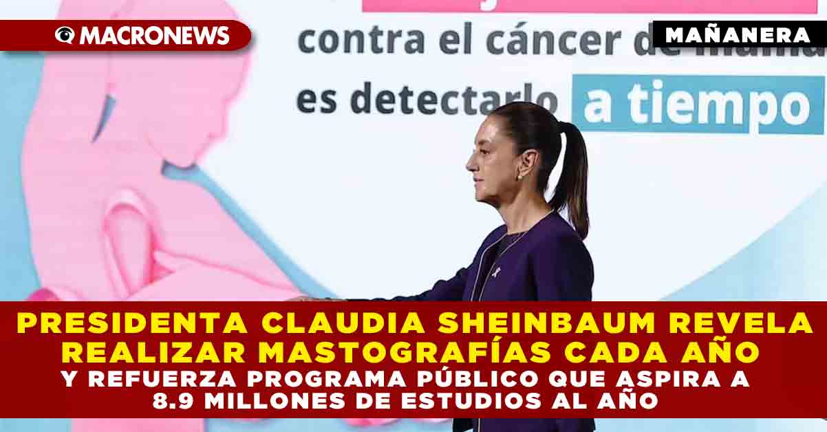 Redacción Macronews.– La presidenta de la República, Claudia Sheinbaum Pardo, confirmó que se somete a exámenes de mastografía de forma anual como parte de su rutina preventiva de salud, al tiempo que su administración impulsa un programa para realizar 8.9 millones de mastografías al año en México con el objetivo de fortalecer la detección temprana del cáncer de mama.
