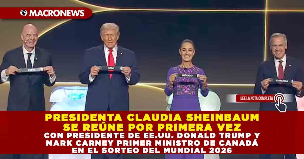 Redacción Macronews.- La presidenta de México, Claudia Sheinbaum Pardo, sostuvo por primera vez reuniones bilaterales con el presidente de Estados Unidos, Donald Trump, y con el primer ministro de Canadá, Mark Carney, en el marco del sorteo de la Copa Mundial de la FIFA 2026, realizado en el Kennedy Center de Washington, D.C.