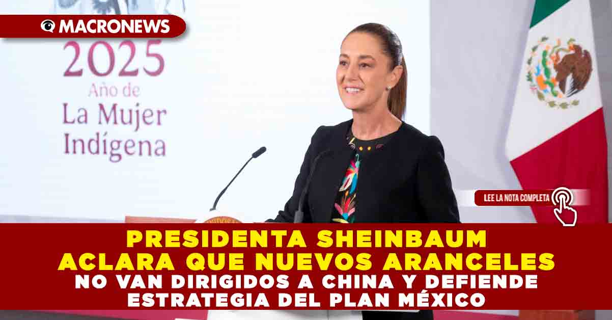 Redacción Macronews.- La presidenta de México, Claudia Sheinbaum Pardo, aclaró que el reciente incremento de aranceles aprobado por el Congreso no está dirigido a China, sino que aplica únicamente a países con los que México no mantiene un tratado comercial vigente, una precisión que busca evitar interpretaciones erróneas y tensiones diplomáticas. La mandataria explicó que la medida forma parte del Plan México, una estrategia orientada a fortalecer la producción nacional sin generar aumentos de precios ni distorsiones en los mercados. Esta postura coincide con lo expuesto por la Presidenta en declaraciones públicas, donde enfatizó que la reforma no constituye una restricción comercial hacia China.