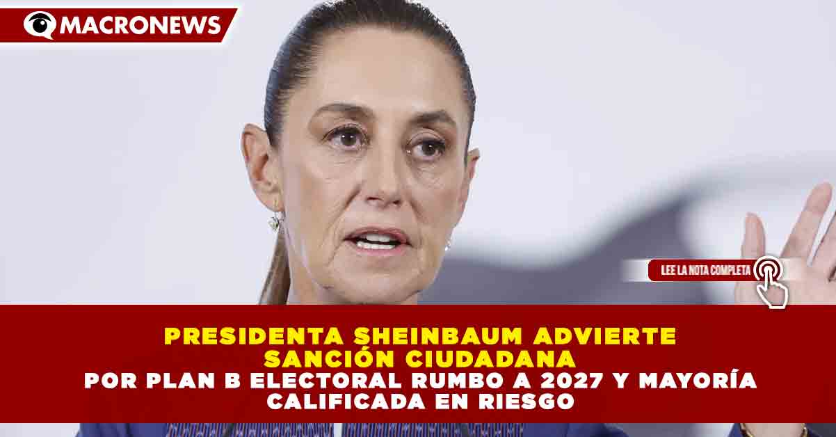 Redacción Macronews.- La presidenta de México, Claudia Sheinbaum, advirtió que la ciudadanía podría castigar en las urnas a los legisladores que no respalden el llamado “Plan B electoral”, iniciativa que actualmente se encuentra en pausa debido a diferencias entre Morena y sus aliados en el Senado.