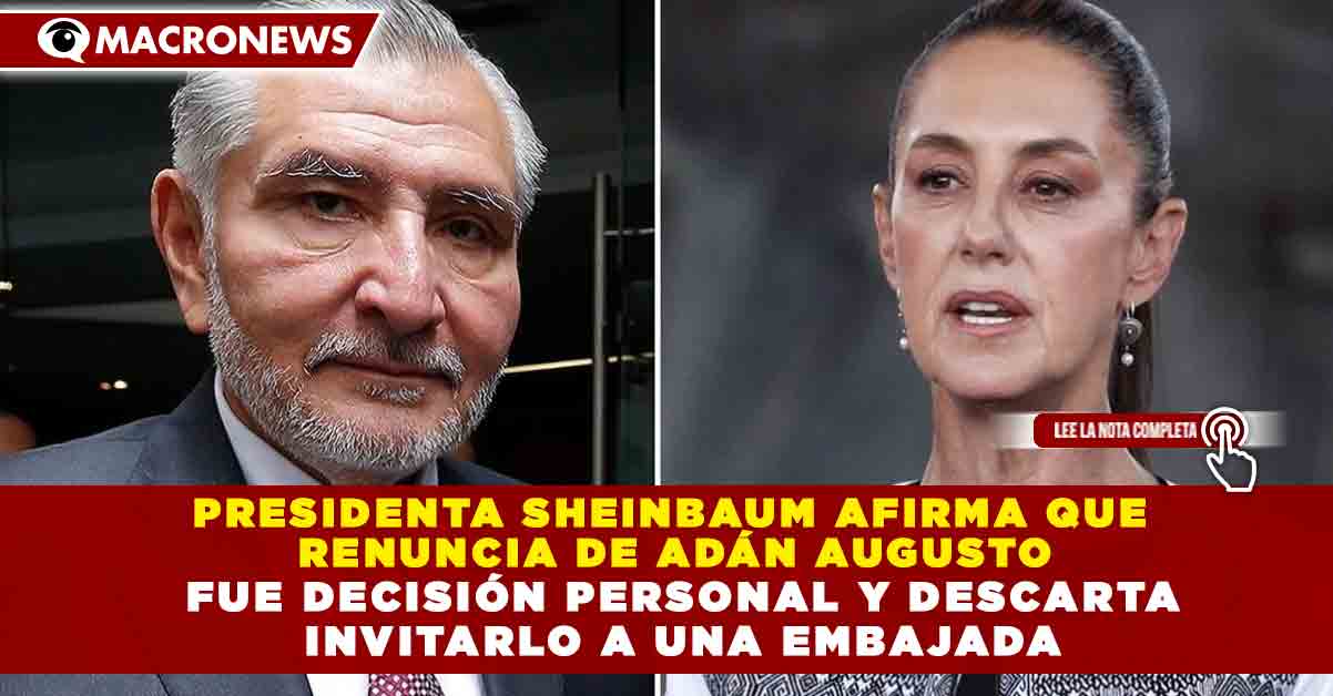 Redacción Macronews.- La presidenta Claudia Sheinbaum Pardo afirmó este lunes que la renuncia del senador Adán Augusto López Hernández como coordinador de la bancada de Morena en el Senado de la República fue una decisión personal tomada por el propio legislador y no derivó de una instrucción presidencial, al tiempo que descartó que dicha salida esté vinculada con un nombramiento diplomático, como el ofrecimiento de una embajada.